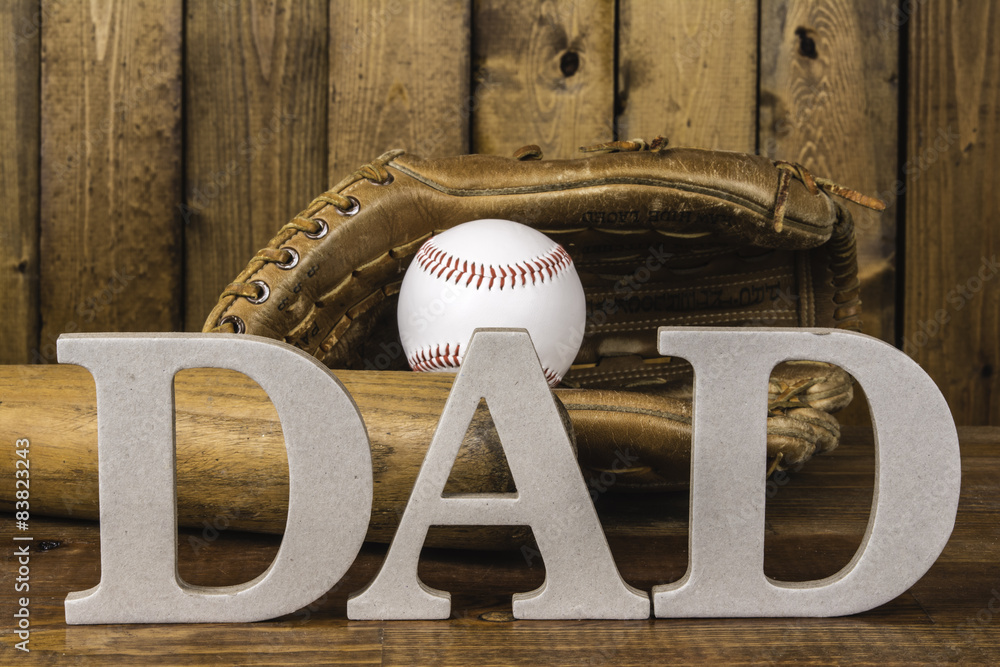 Letters Spelling Dad In Front Of Baseball Bat Glove And Ball Stock Photo Adobe Stock