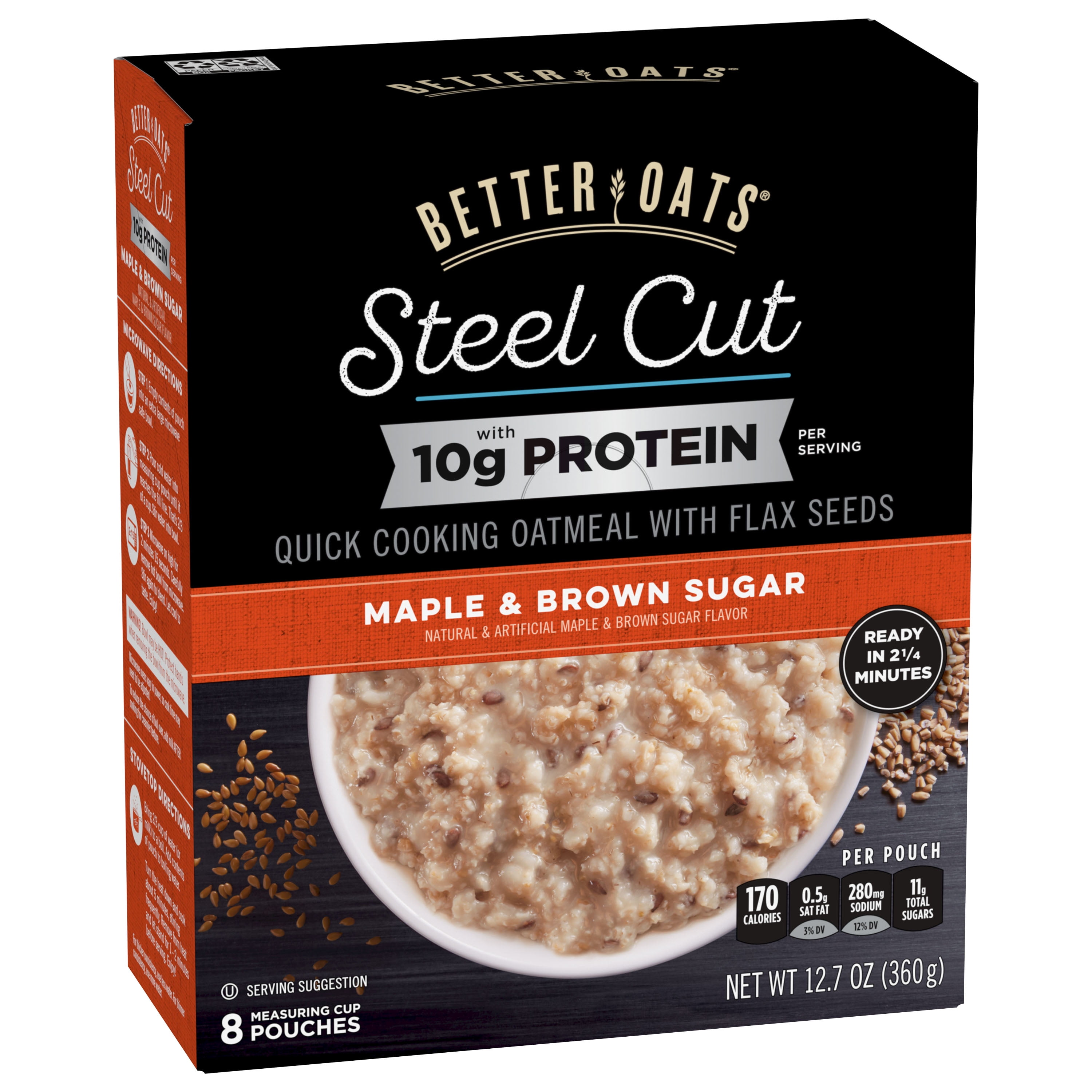 Better Oats Steel Cut Protein Oatmeal With Flax Seeds 8 Instant Maple And Brown Sugar Oatmeal Packets 12 7 Oz Pack Walmart Com
